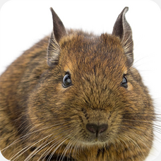 The common degu (O. degus) lives in the Chile Matorral region, with dry summers and rainy winters. Their habitat overlaps with the moon-toothed degu (O. lunatus).O. degus is not a threatened species, and are considered "Least Concern" by the IUCN Red List. They are also the most well known and researched degu species.Degus are diurnal (awake during the day) and will often explore the area in search of food. They are strictly herbivorous, and will eat mostly grasses, leaves, and seeds. However, they are highly intolerant of sugars even those found in natural foods. This is likely due to the lack of foods with sugars in them in their wild environment as they've evolved.Wild degus always have brown fur with lighter colored fur around the eyes and belly. Their hairs are actually "agouti" which feature bands of multiple colors.Degus are highly social and live in large communal burrows! Female degus have even been seeing nursing eachother's young.